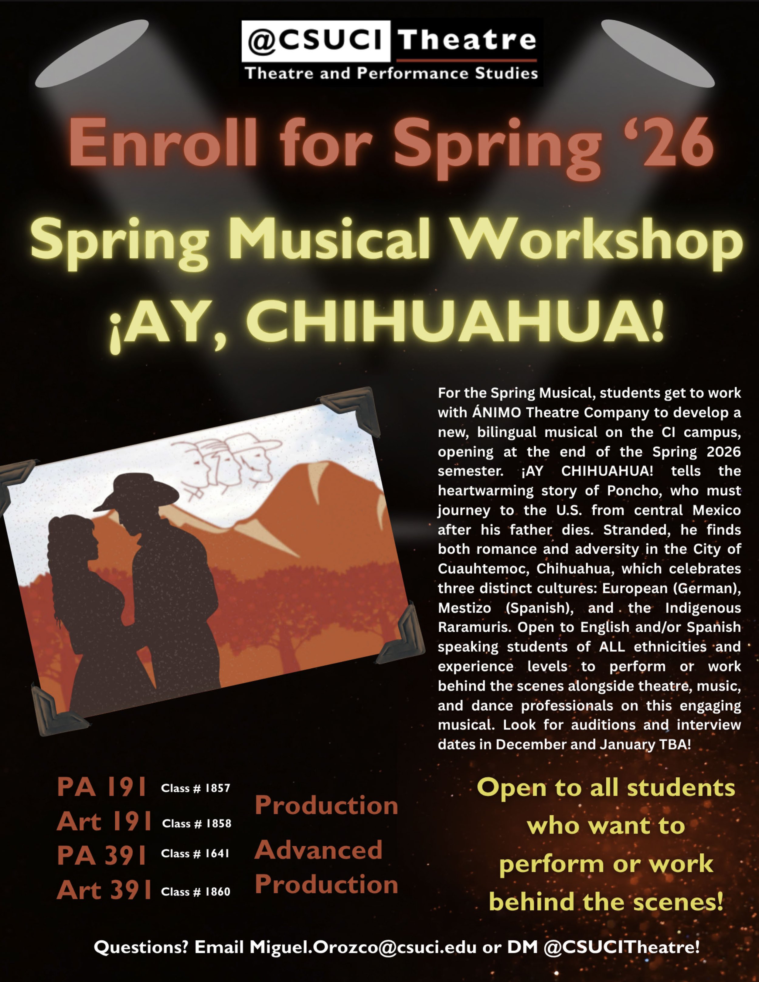 Following the success of El Bracero, ÁNIMO produced ¡Ay Chihuahua! an original stage play written by Miguel Orozco. The musical is loosely based on Mr. Orozco’s family and takes place in México in the1960s. Following an unexpected tragedy, the lead character Poncho, leaves the city life and travels north to the U.S. On his journey he is introduced to Mexico’s beautiful and diverse cultures, its people, and music. Read more…